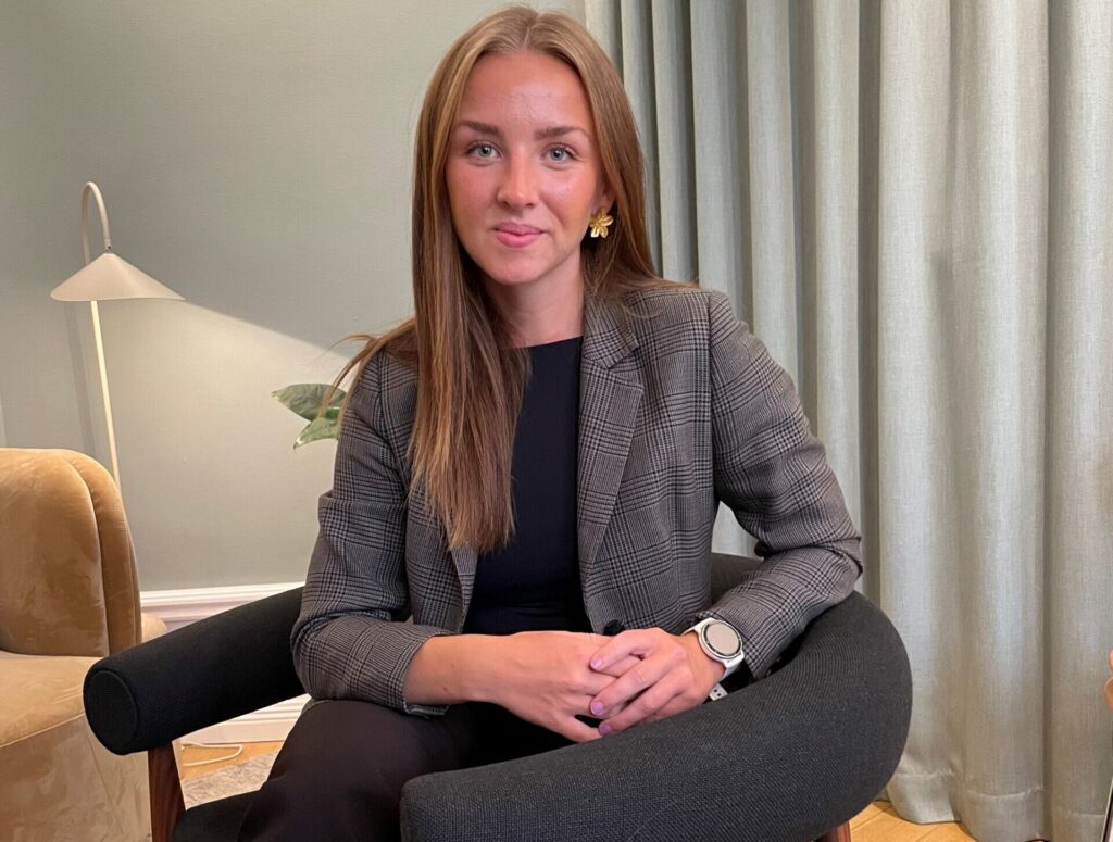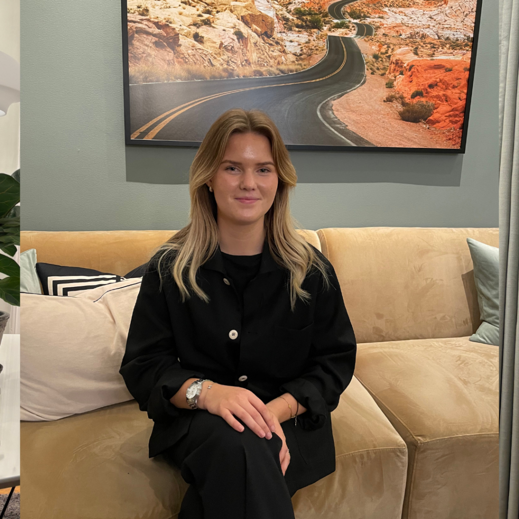 Victoria studerar sin femte termin på juristprogrammet vid Stockholms universitet och arbetar på byrån sedan augusti 2025.